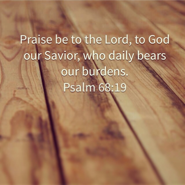 | Praise be to the Lord, to God our Savior, who daily bears our burdens. Psalm 68:19 |