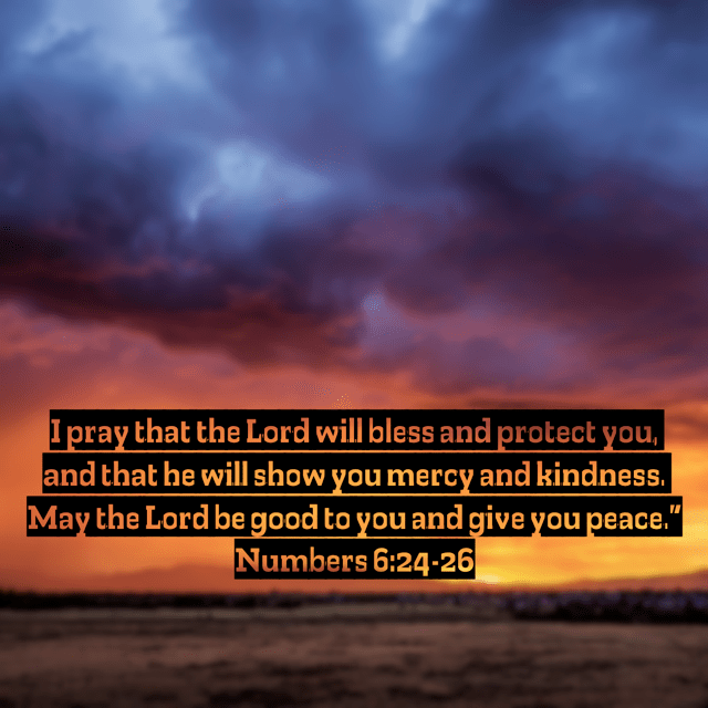I’ll end with this: “I pray that the Lord will bless and protect you, and that he will show you mercy and kindness. May the Lord be good to you and give you peace.”