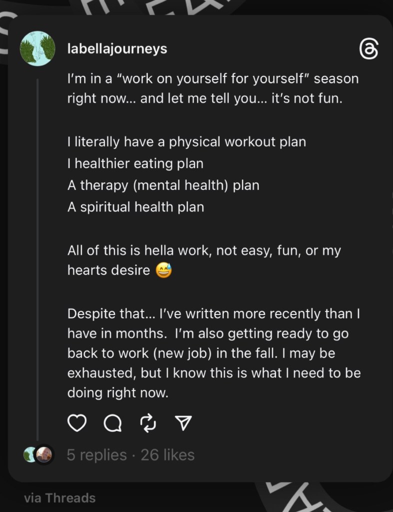 I do have to say, Threads App has helped to invigorate some of my creativity in ways that were previously lacking or falling to the wayside. It came into existence right at the perfect time for me. While I am still pursuing in person community and figuring out what that looks like in our new city, I am also thoroughly enjoying the virtual community I’ve found on Threads.