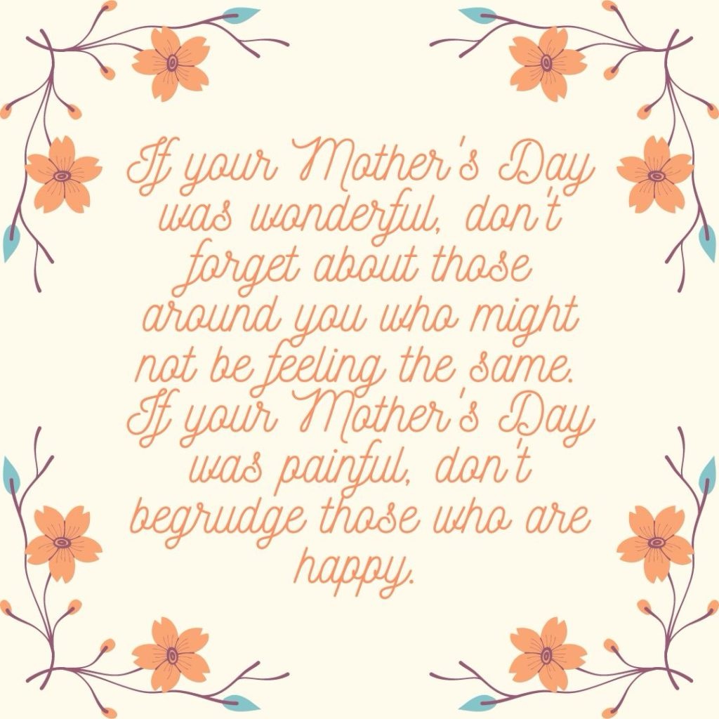 This year, while I celebrate those around me who are mothers, many of who are exceptional women and mothers, I also choose to take good care of myself. This looks like creating safe space to feel big things and avoiding spaces that might be triggering.